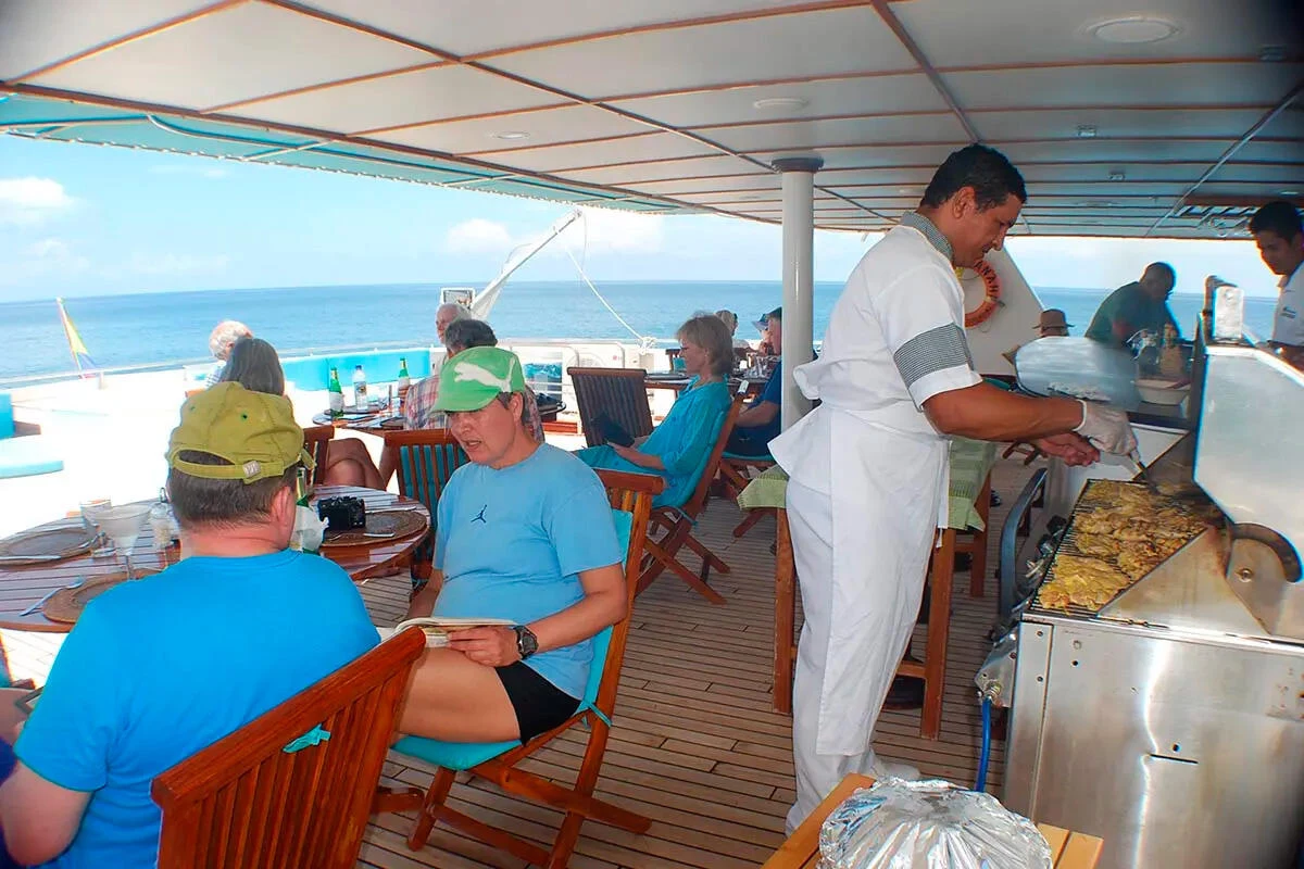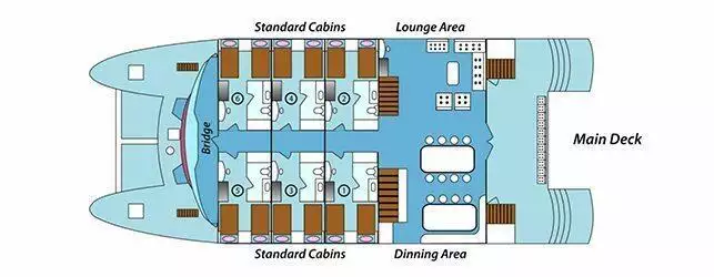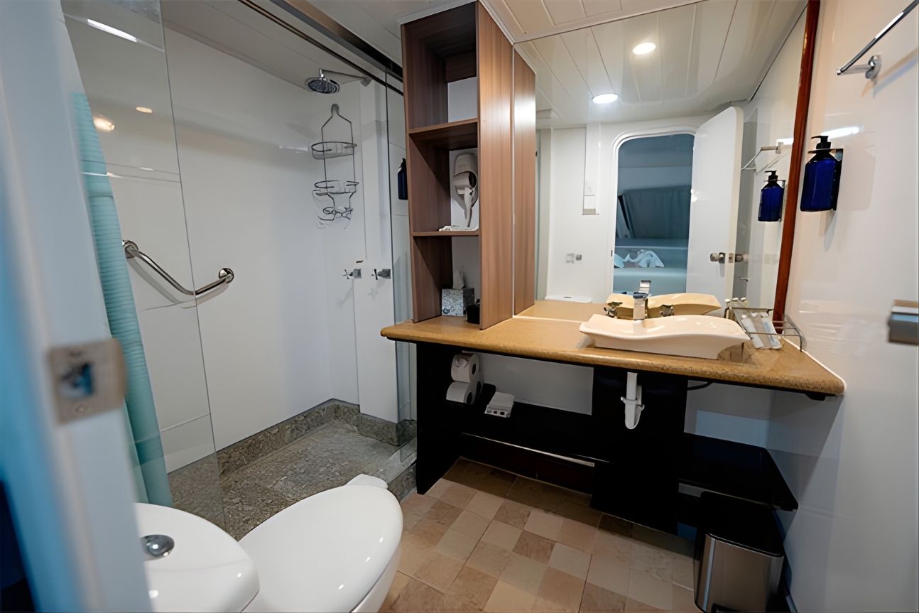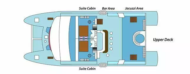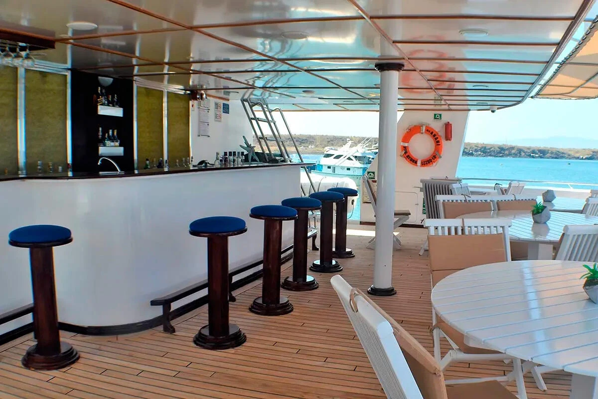 The Anahí catamaran stands out for its elegance, stability, and luxury service. It accommodates 16 passengers in 8 cabins (6 standard and 2 suites), all with private bathrooms and air conditioning. Its itineraries visit remote and exclusive islands, and onboard guests enjoy spacious lounges, a jacuzzi, and a refined atmosphere. Perfect for travelers seeking comfort and a premium Galápagos experience.