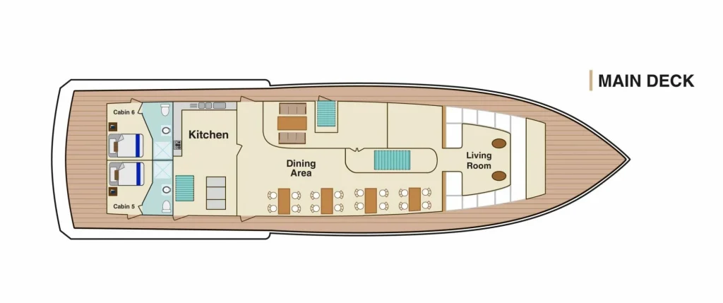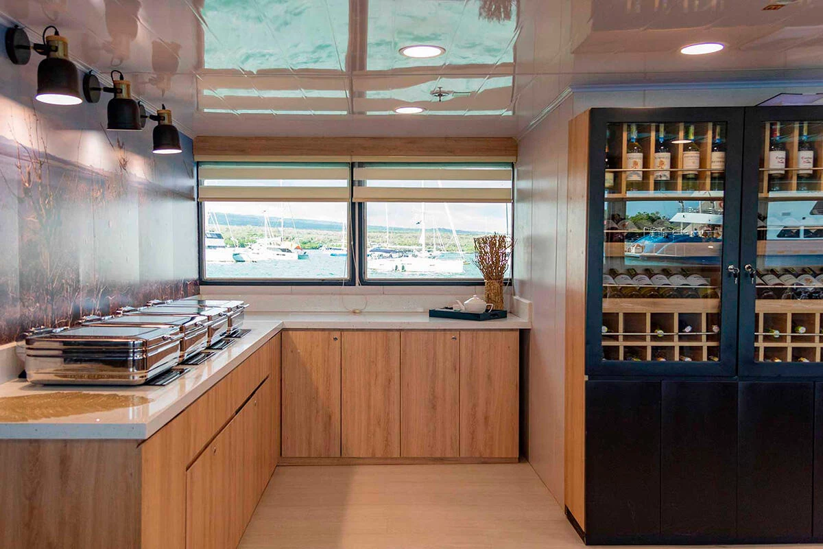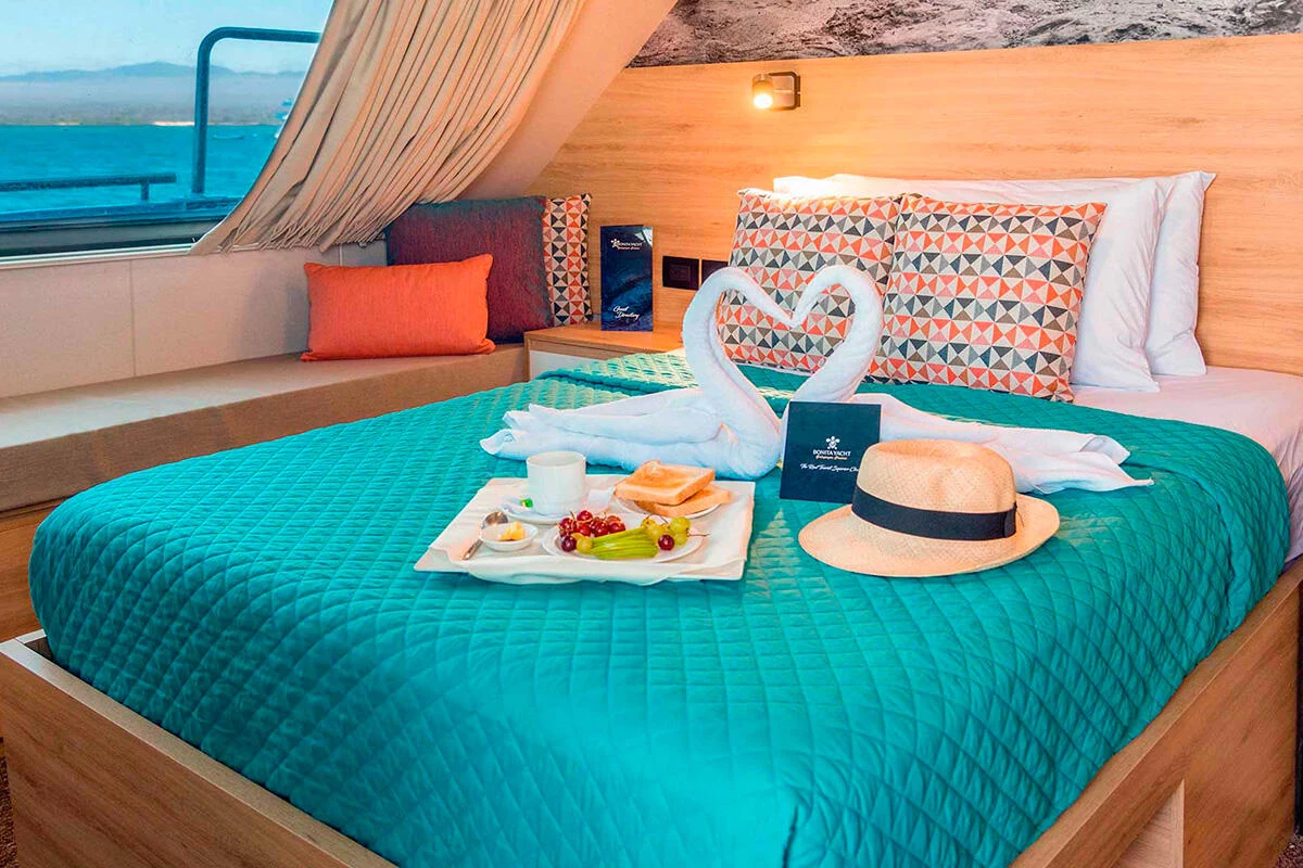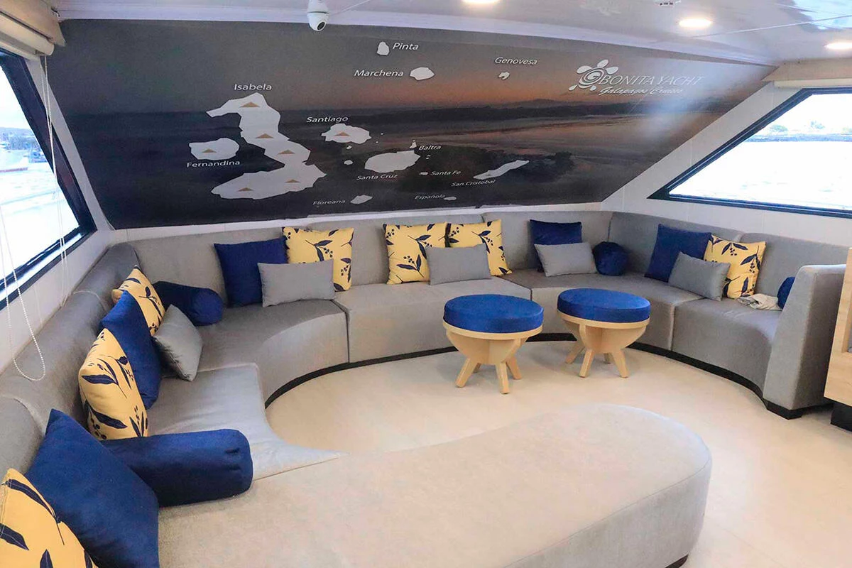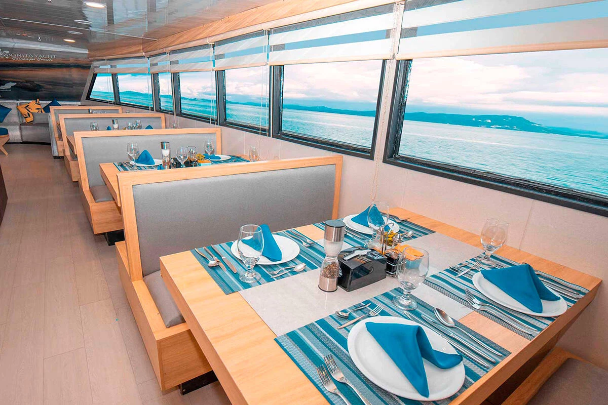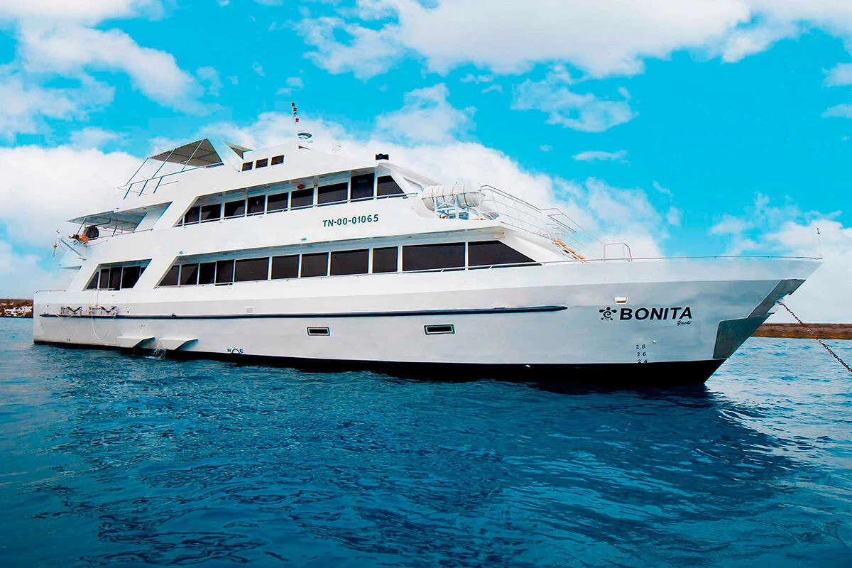 With a family-friendly and cozy environment, the Bonita yacht is perfect for travelers looking to explore the Galápagos with comfort and closeness to nature. It accommodates 16 passengers in 9 double and triple cabins, all with private bathrooms. It offers itineraries to the northern and southern islands, with great food, pleasant social areas, and a friendly crew. An excellent option for families or small groups.