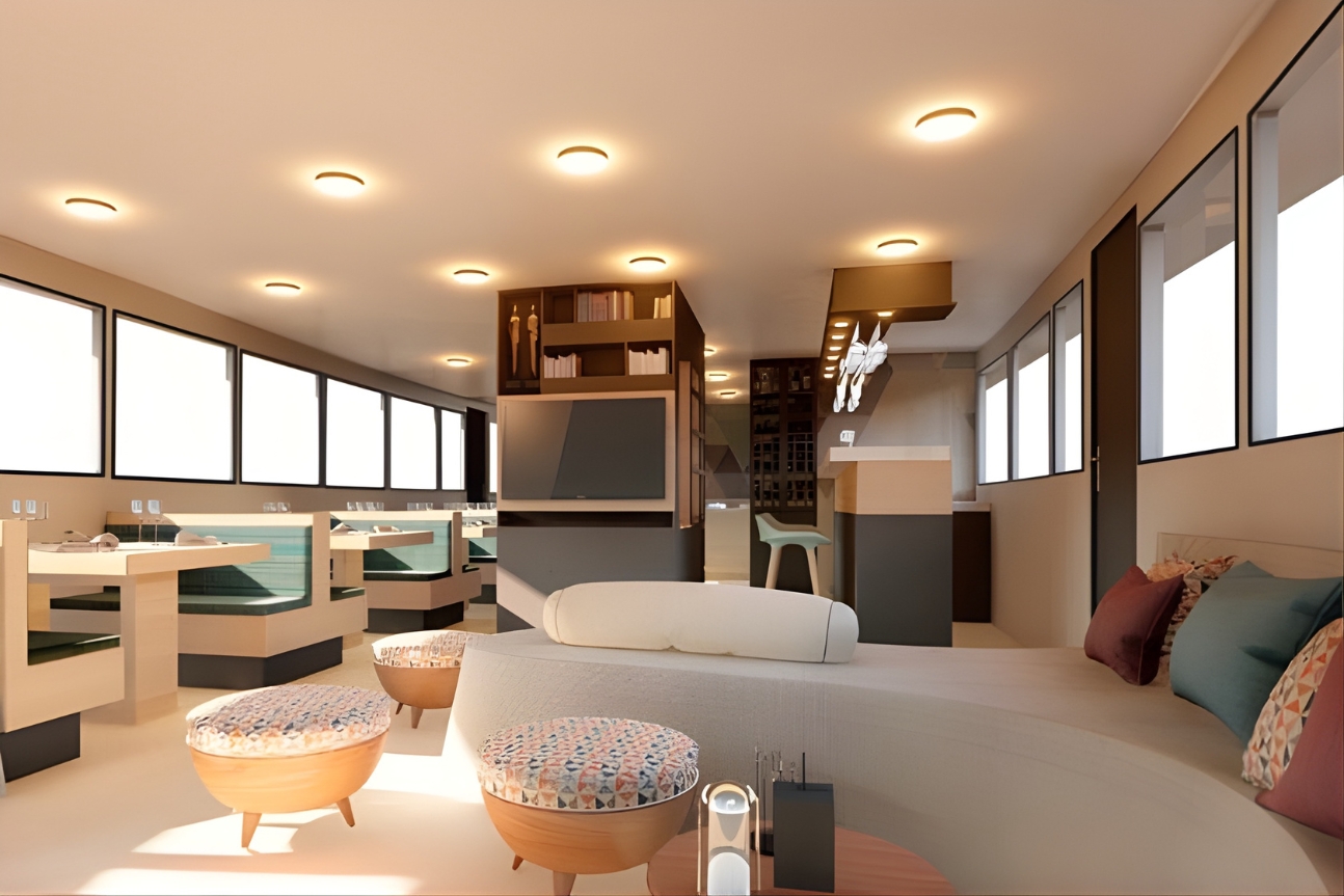 Safety & Navigation: 6 lifebuoys, 2 survival rafts, 15 passengers each, 30 life jackets for passengers, 20 life jackets for crew, Flare gun, smoke signals, SOS flashlights signals, CO2 extinguishers, Fire detectors and complete fire protection system, Fire extinguishers, External automated defibrillator Fire suits