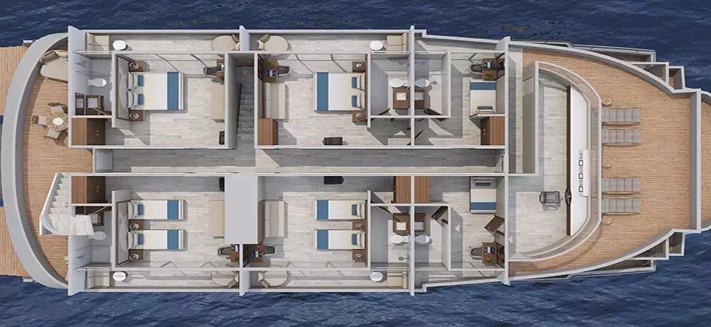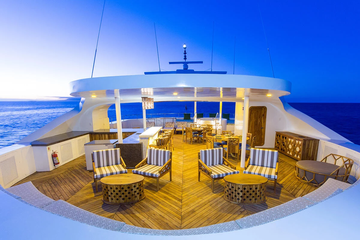 | On Board: | Cruise Manager, DVD / TV, Jacuzzi, Kayaks, Library, Private Balconies, Satellital Phone, Snorkeling equipment, Wetsuit |